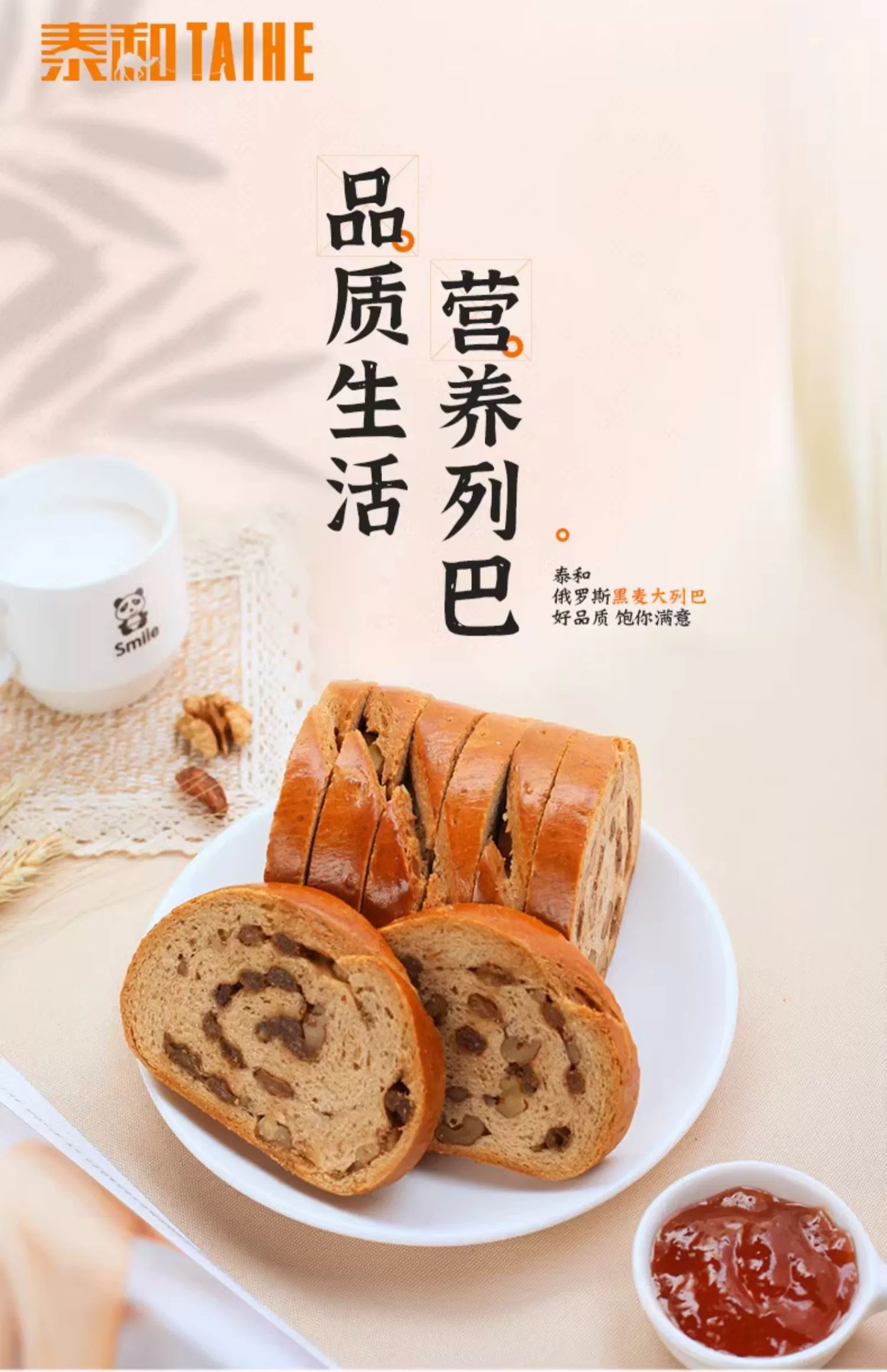 泰和列巴俄罗斯大面包全麦500g正宗果仁粗粮大列巴营养代餐饱腹